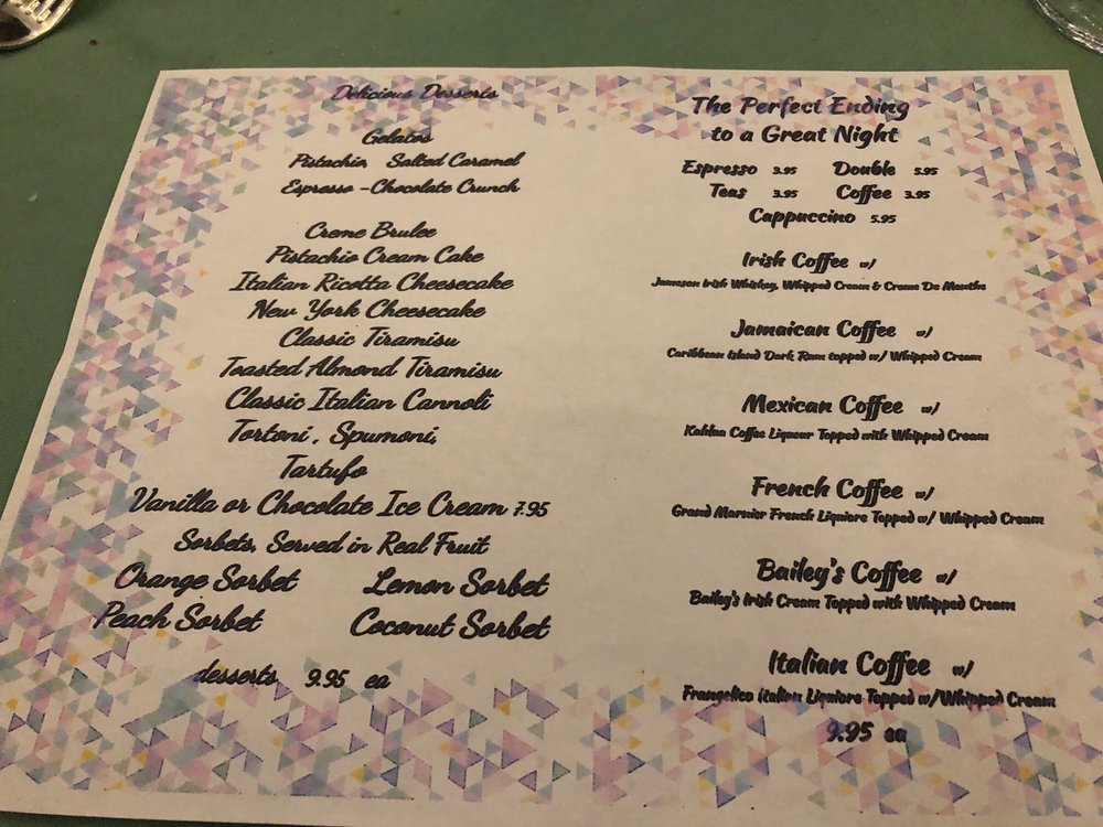 “ perfect experience with my 13year old son tonight. old school red sauce italian perfectly executed with bonafide old school waiters. started with pasta fagioli and pear gorgonzola salad and my son had chicken parm and i had stuffed pork special. great value and quality. untouchable overall. ”